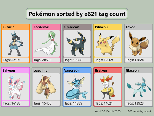 I saw a video about Pokemon Smash or Pass statistics and I was curious about how e621 trends reflect that.