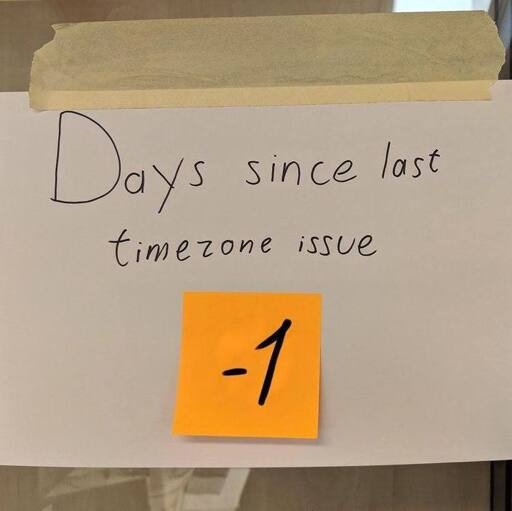 arrow-up11arrow-down1imageDays since last timezone issuelemmy.ml☆ Yσɠƚԋσʂ ☆@lemmy.ml to Programmer Humor@lemmy.mlEnglish · 4 days agomessage-square1linkfedilink